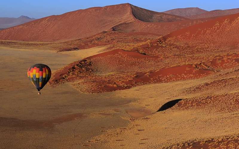 Get up early and head out before sunrise to view the spectacular contrasting colors of the Namib sand dunes. Alternatively choose to partake in a hot air balloon safari to get a birds eye view of the spectacular desert landscapes (activity optional). Visit Deadvlei and Sossusvlei where you will see some of the highest sand dunes on the planet. Visit the Sesriem Canyon before returning to the Desert Lodge.