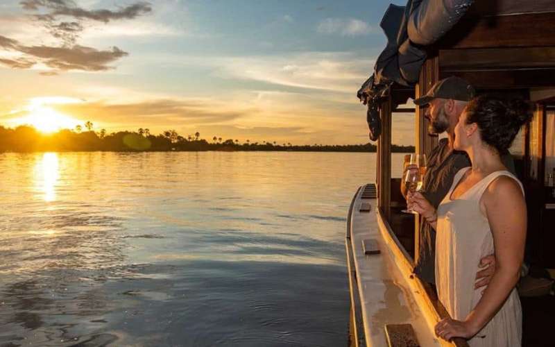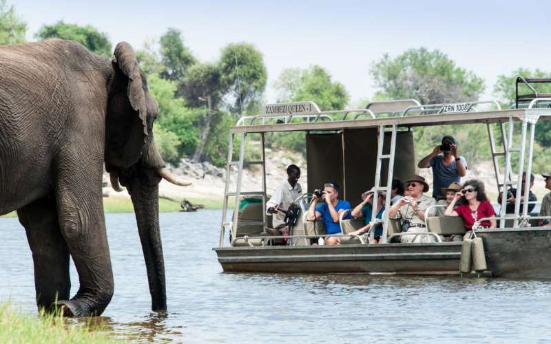 Travel west into Botswana and the town of Kasane on the banks of the Chobe River. Arrive in time for lunch followed by a wildlife boat cruise on the Chobe River, possible sightings include elephant, hippo, cape buffalo, waterbuck, giraffe, zebra, blue wildebeest, kudu, and an array of bird species. Return to the lodge for another delicious African dinner.